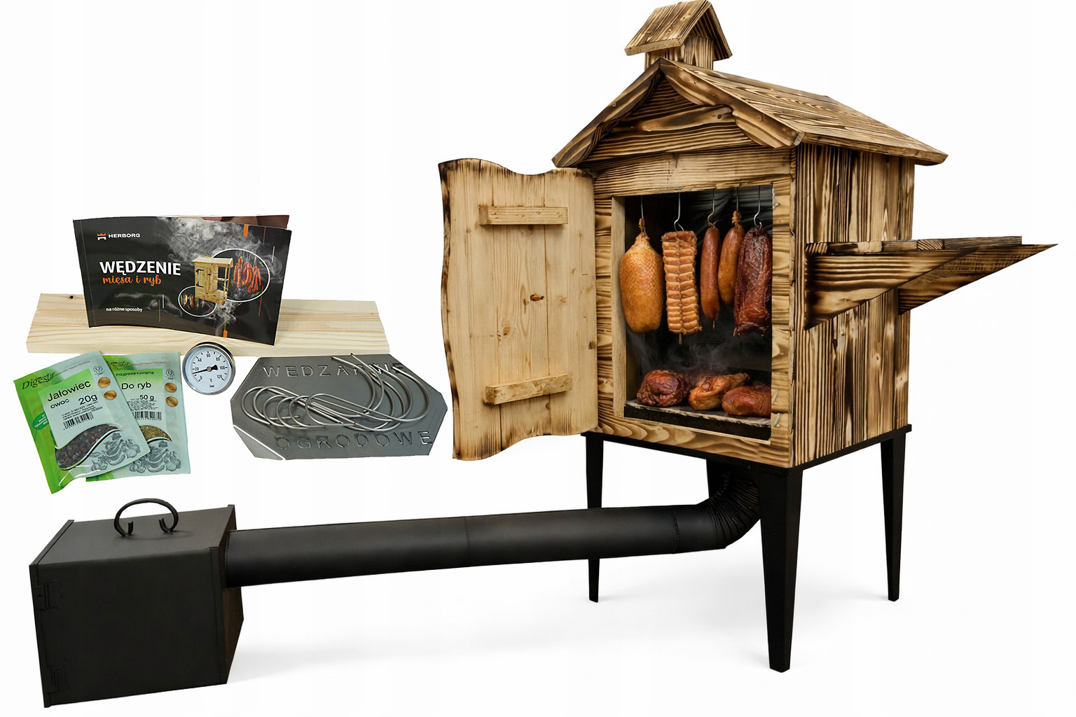 • Książka o wędzeniu: 1 szt., porady + przepisy na mięsa, kiełbasy i ryby
