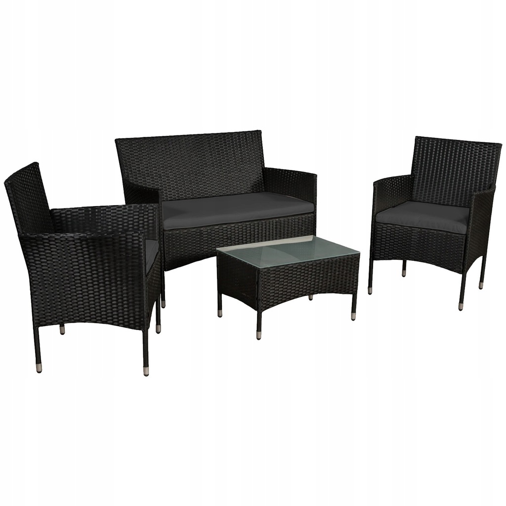 ZESTAW MEBLE OGRODOWE TECHNORATTAN KOMPLET MEBLI MEBLE OGRODOWYCH DO OGRODU Kolor czarny